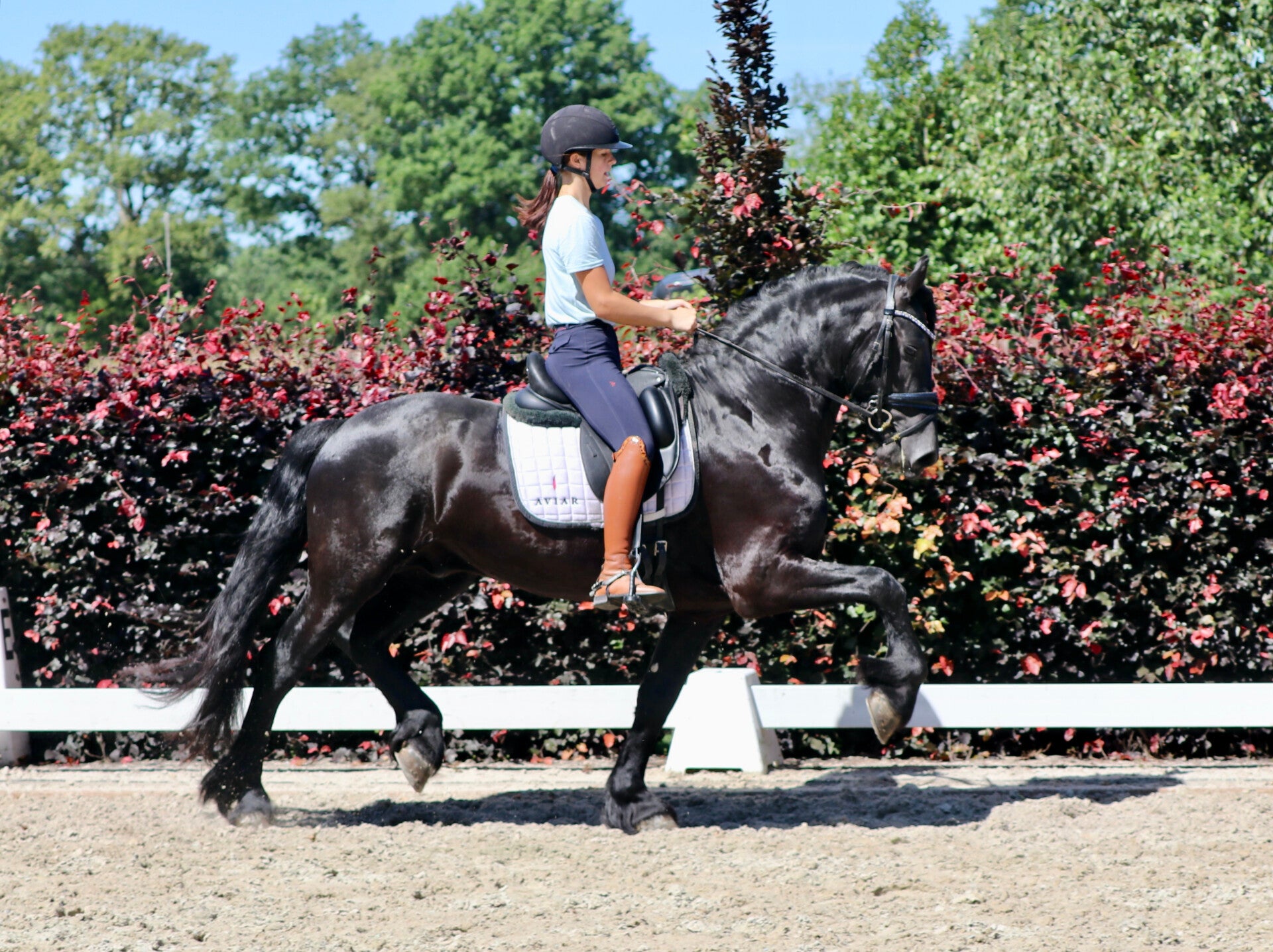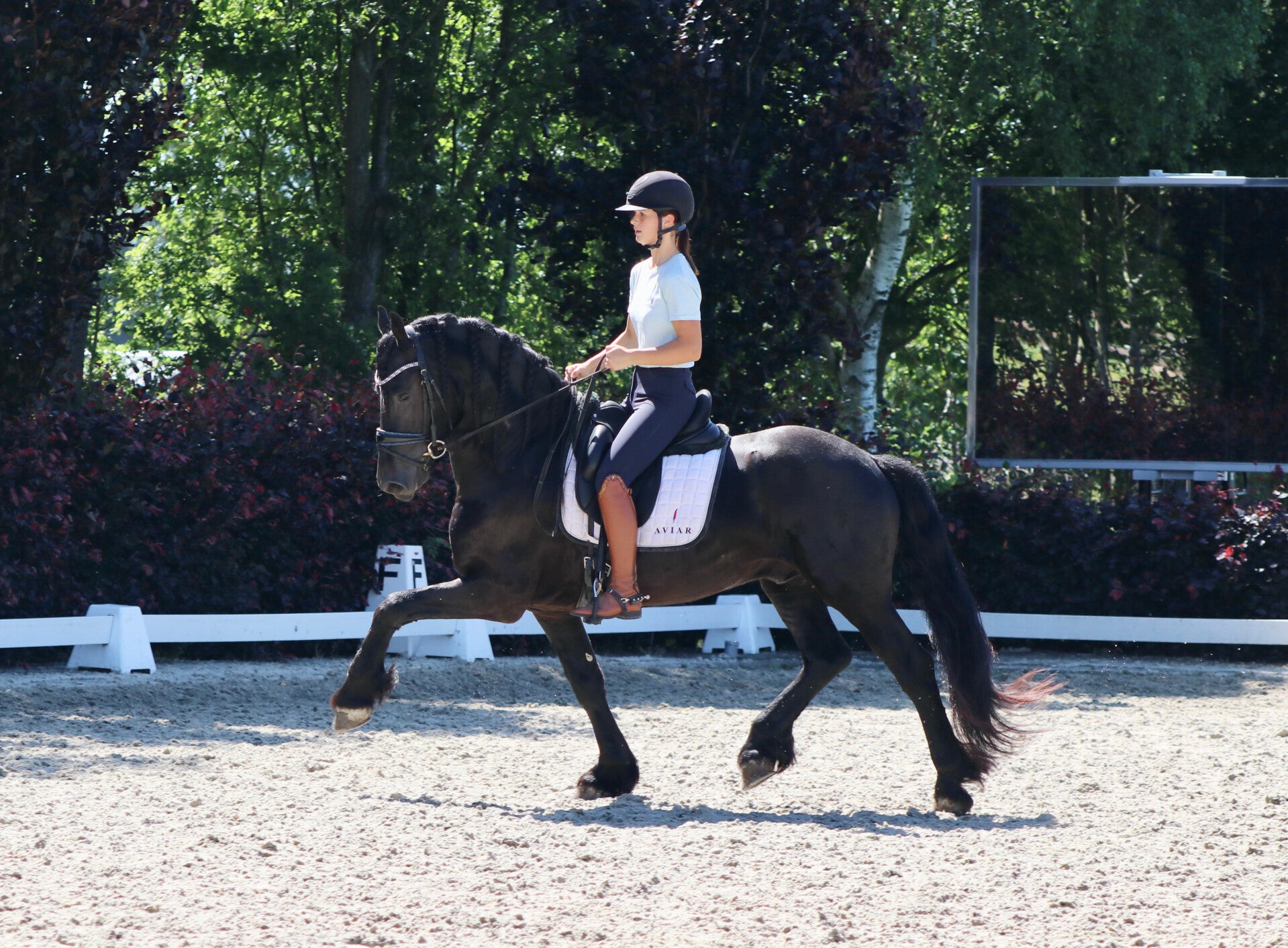 Hij is niet de grootste maar toont wel groot onder het zadel. Hij heeft veel zelfhouding en veel uitstraling.