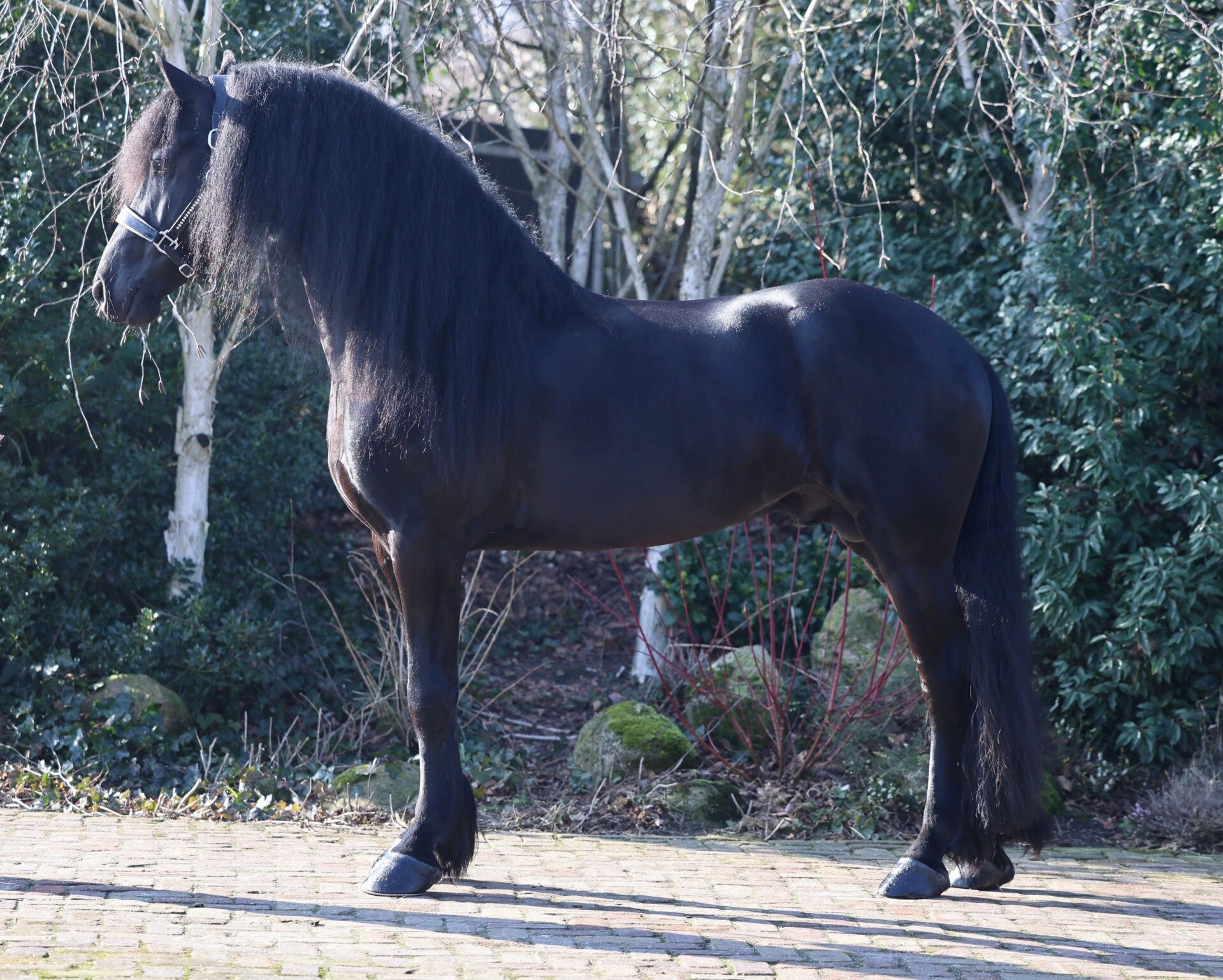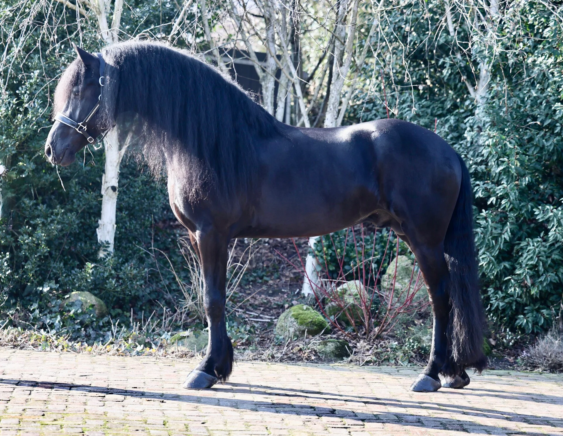 Johnnie Walker is a high-quality Friesian horse for sale, combining power, elegance and excellent rideability.